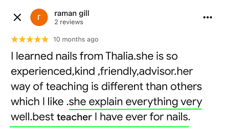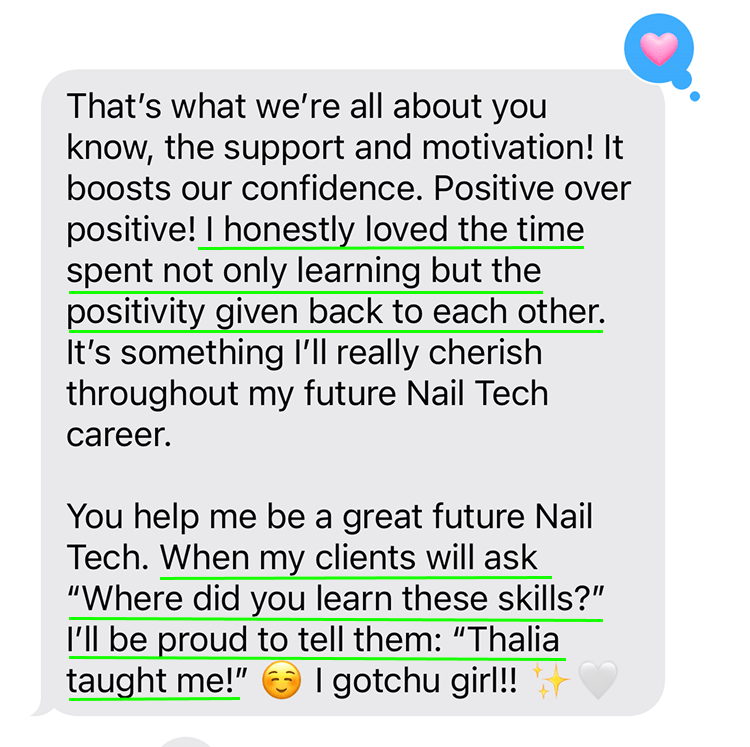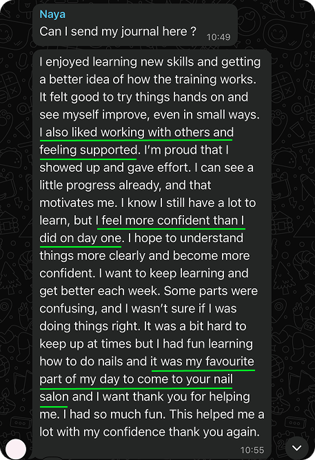 With consistent practice and the right support, she kept going and is now known for precise work and detailed nail art that clients trust.