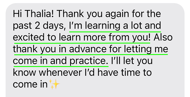 With step-by-step correction and real practice, she learned properly and built confidence in her work.
